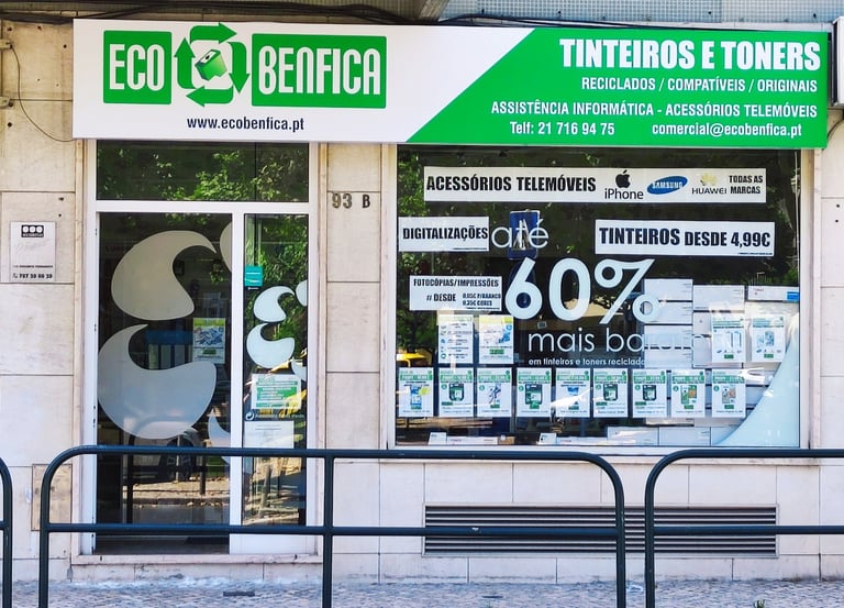 Desde 2012 que nos dedicamos à comercialização de Tinteiros e Toners Reciclados, Compatíveis e Originais, Impressoras, Acessórios de Telemóveis, Serviço de Fotocópias, Impressões, Digitalizações e Encadernações.